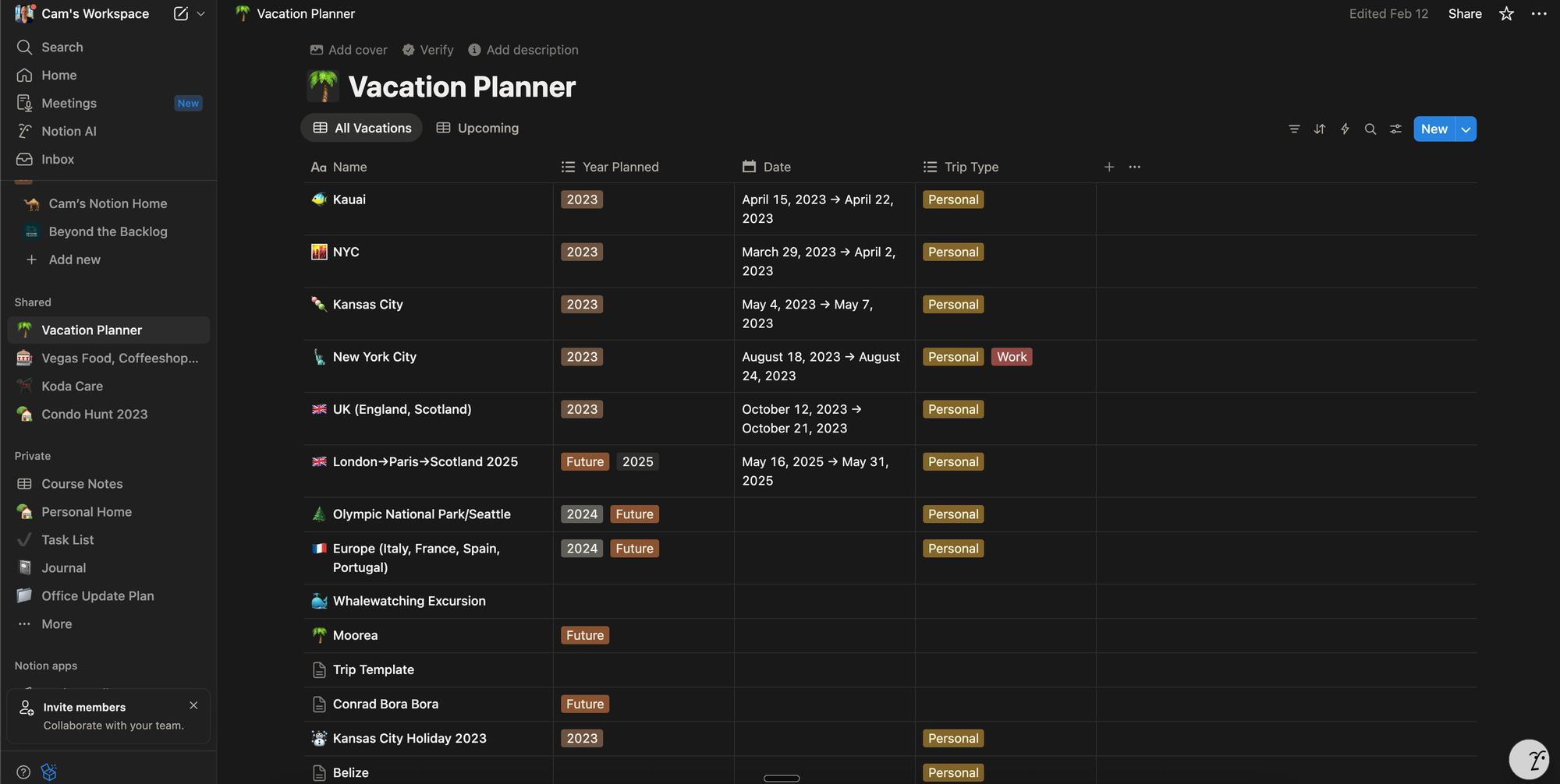 Why I like it: Notion is flexible enough for messy capture but structured enough to build real systems and share them easily with my friends and family. Databases make it easy to connect work, life, and content in one place—and it works well as a "home base" for projects both personal and professional.